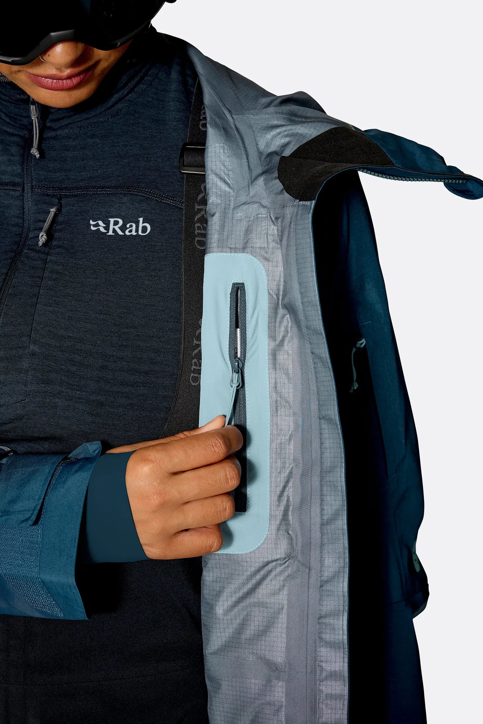 • Ditch heat on the skin up with two-way pit zips.